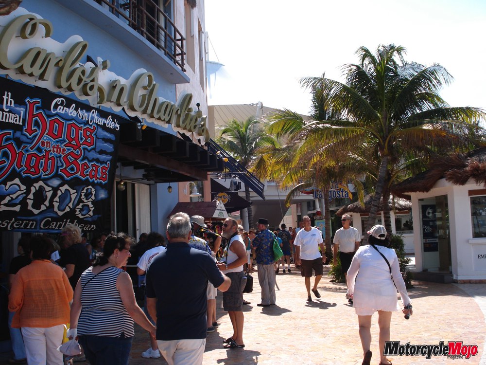 Hogs on the High Seas, the world’s only rally on a cruise ship, seemed to be just the cruise for us; scheduled to leave Sunday November 2 from Port Canaveral, Florida. Our cruise time would be one week, with four major party stops along the way. Average age of passengers–52; average passion– motorcycles. Yes, this cruise seemed a bit out of the ordinary, but after looking extensively through the website, www.hsrally.com, I got the big picture.