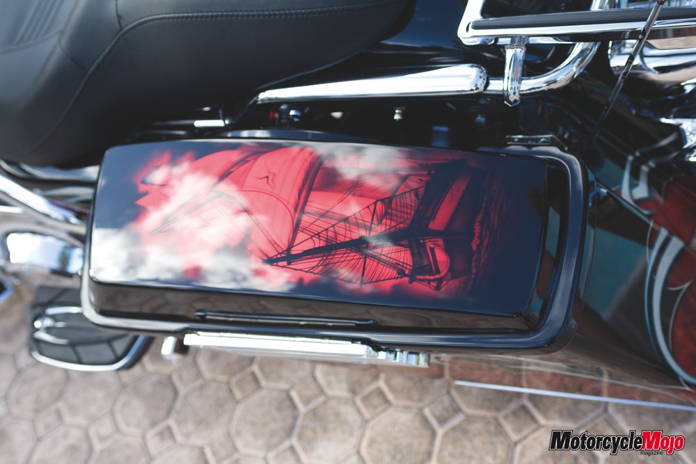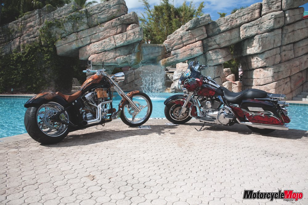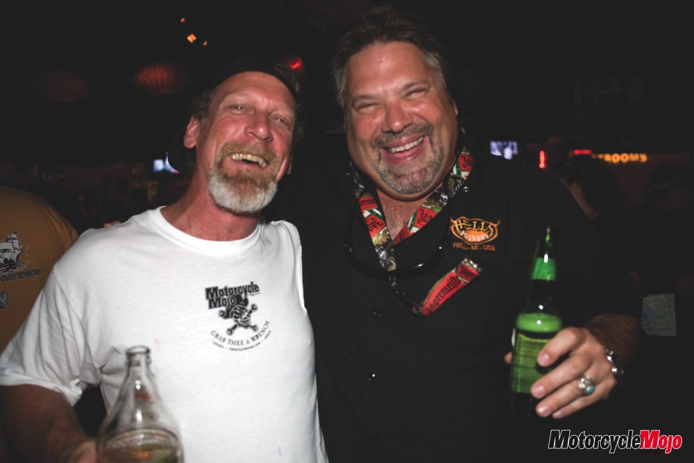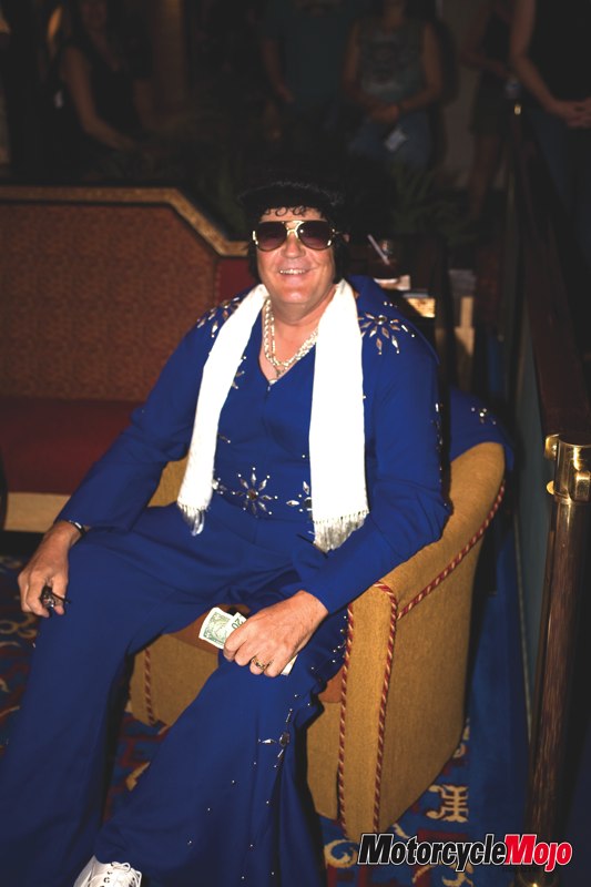 Check out our website, www.motorcyclemojo.com, and go to Mojo TV for the bike presentation – the Captain of the ship is the person seated on the bike as it is raised up out of the floor of the theatre…that’s just before the big burnout on stage by the builder.