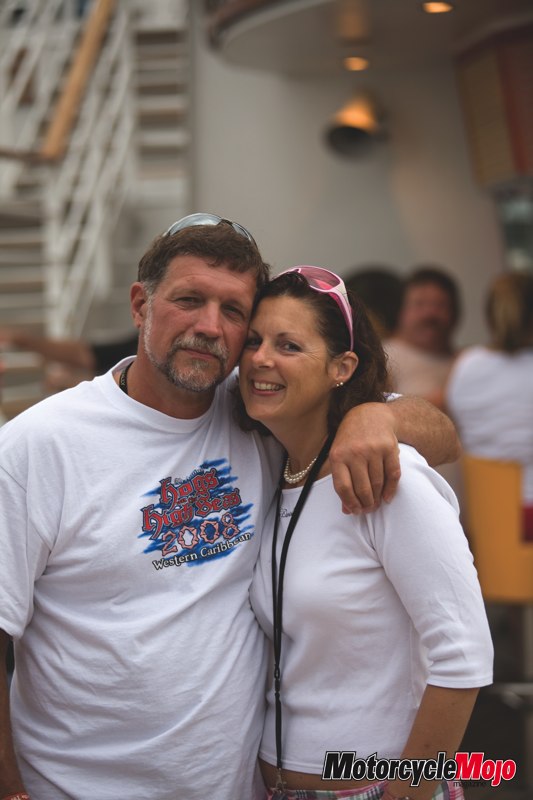 Dean and Debbie Anderson, the originators and organizers of the Hogs on the High Seas Rally began this cruise in 2001. They were bored with the regular rallies like Laughlin, Daytona and Sturgis and wanted to offer bikers a different type of rally to enjoy, something out of the ordinary. They clearly outdid themselves with most people rebooking for the following cruise to ensure they won’t be left on dry dock. While many of the guests on the ship are Harley riders, there are riders of all makes as evident by the number of motorcycle branded shirts we saw and the number of entries in the Metric category of the ‘Photo Bike Show’.