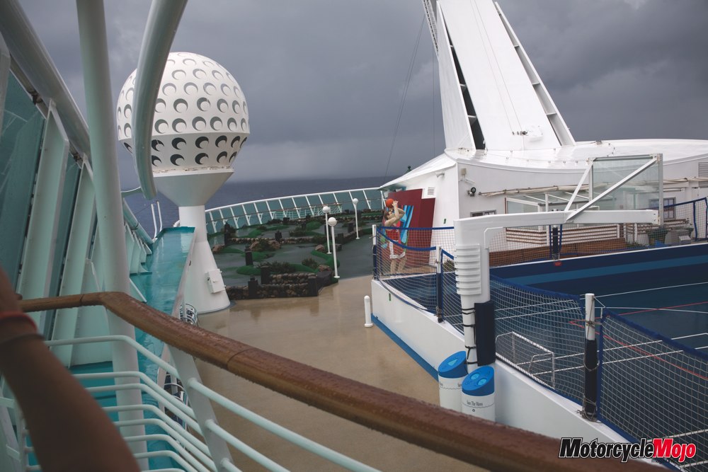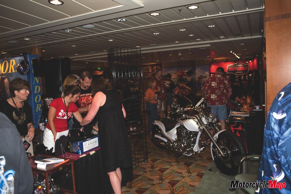 We spent the second day at sea on our way to Labadee. The vendor area was now open on the second deck with a number of top quality companies like Hell’s Foundry, Küryakyn, Klock Werks and Heli Bars to name a few and many of the vendors offered product seminars through- out the week. Each vendor also provided a minimum of $5,000 in merchandise to be given away during the week at the nightly giveaway shows, with many of the vendors pitching in much more as the week went on.