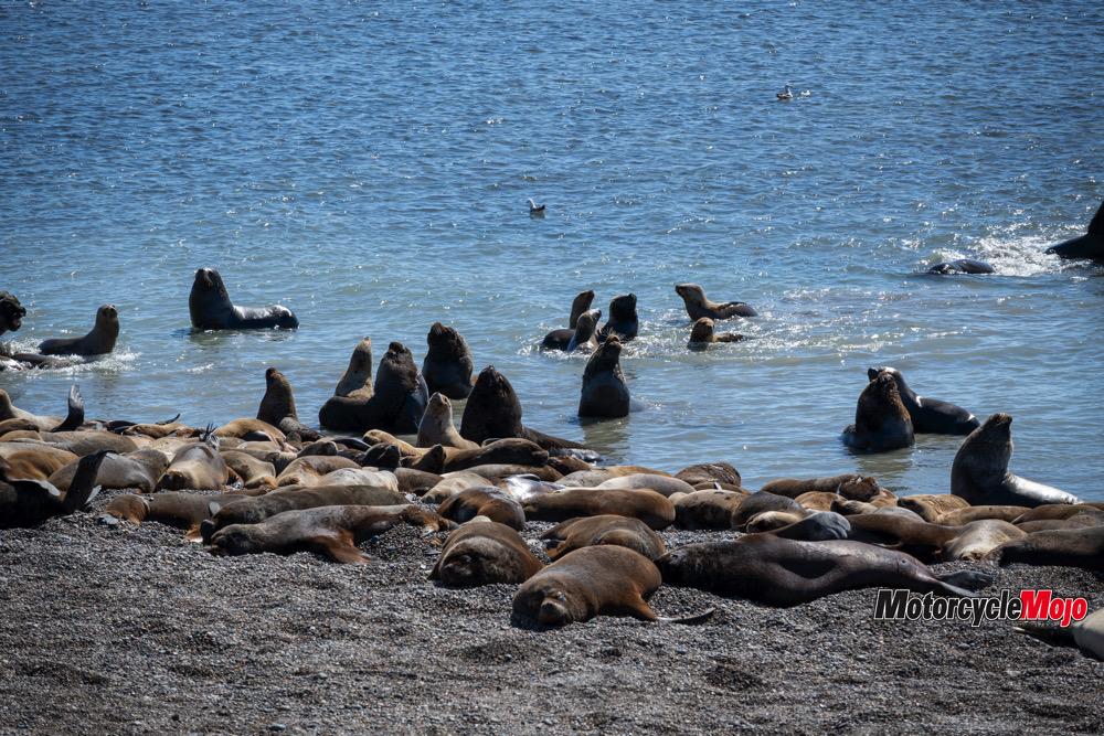The moto hostel in Puerto Madryn already half-expected us, because the three Argentinian riders were already there. We had all planned to visit the Valdes Peninsula, famous for its elephant seals and sea lions, and for the orcas’ acrobatic feeding frenzy, temporarily beaching themselves to snatch their prey. But its dirt roads were closed due to flooding.