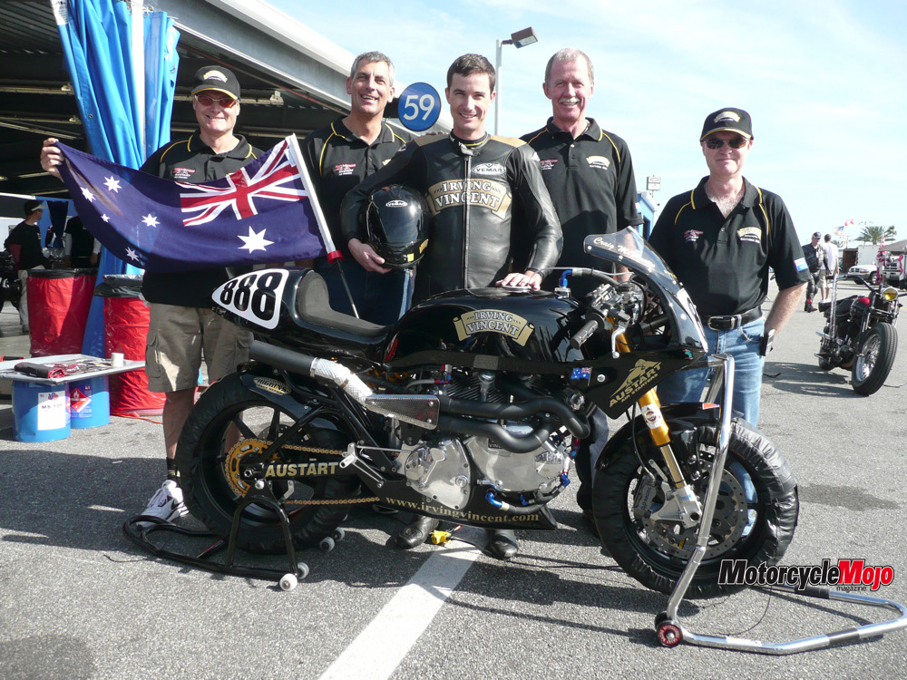 In March 2008, Aussie road-racer Craig McMartin rode a hand-built Australian air-cooled twin to a landmark Battle of the Twins victory at Daytona International Speedway. It was a win that stunned the locals, elevated the Irving Vincent project onto the world stage, and proved that two brothers from Melbourne — Ken and Barry Horner — could take on the high banks of Daytona and leave with a winner’s trophy. Eighteen years later, the team is going back.